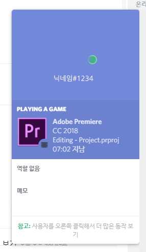 디스코드에는 이런식으로 표시가 되고, 어도비사의 프로그램을 켰을시에는