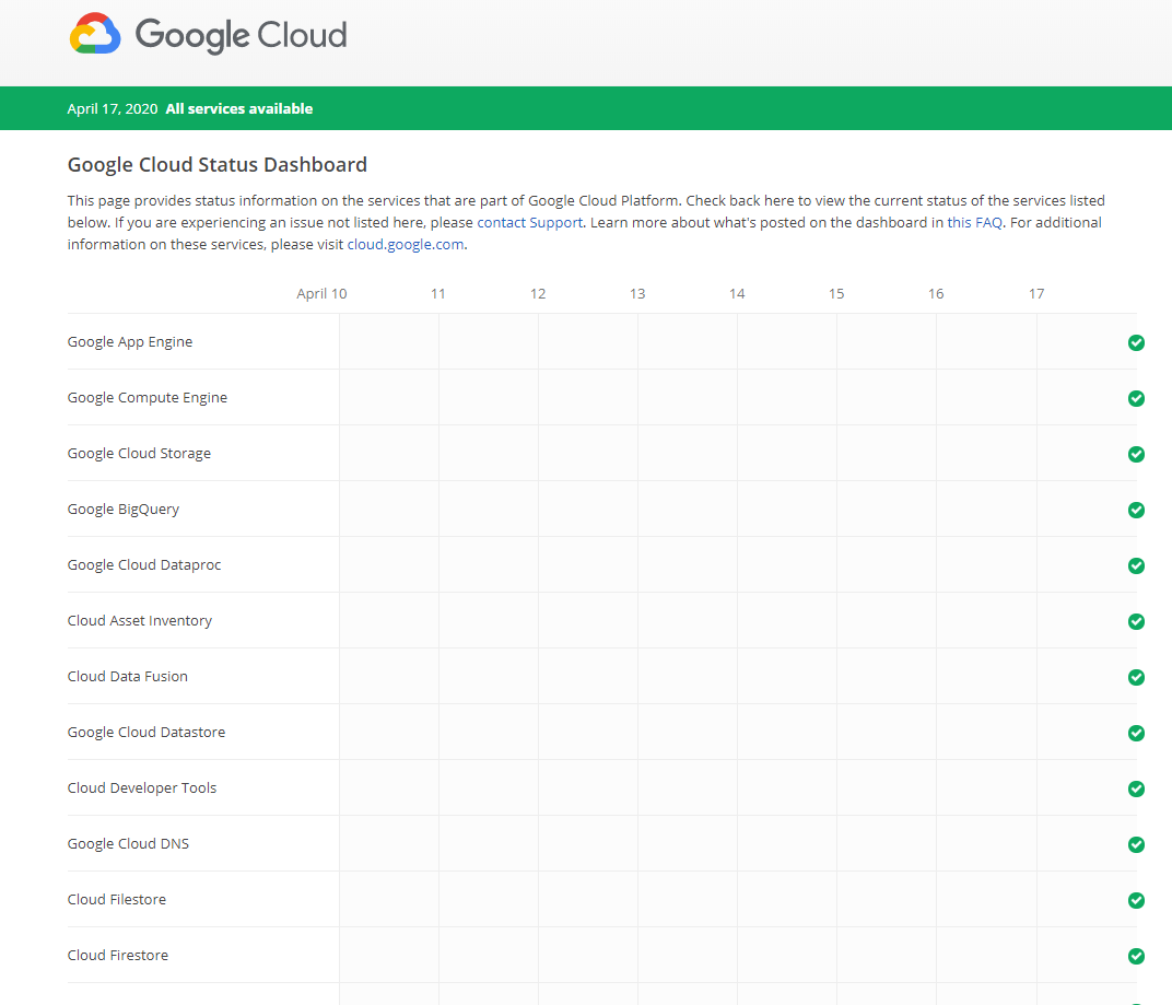 그리고 이곳을 클릭하시게 되면, Google Cloud에서 제공하는 서비스 상태를 확인하실 수 있습니다.