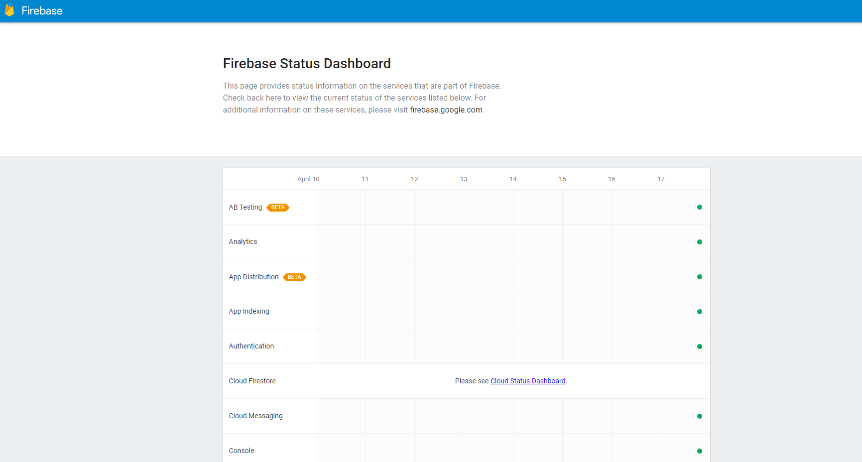 안녕하세요, 이번엔 구글에서 제공하는 Firebase의 서버 상태를 확인할 수 있는 법을 안내해 드릴려고 합니다. Firebase란 구글에서 제공하는 개발자들을 위한 서비스인데, 웹 & 파일 호스팅, 회원가입 API 등 다양한 종류의 API들을 활용할 수 있습니다.