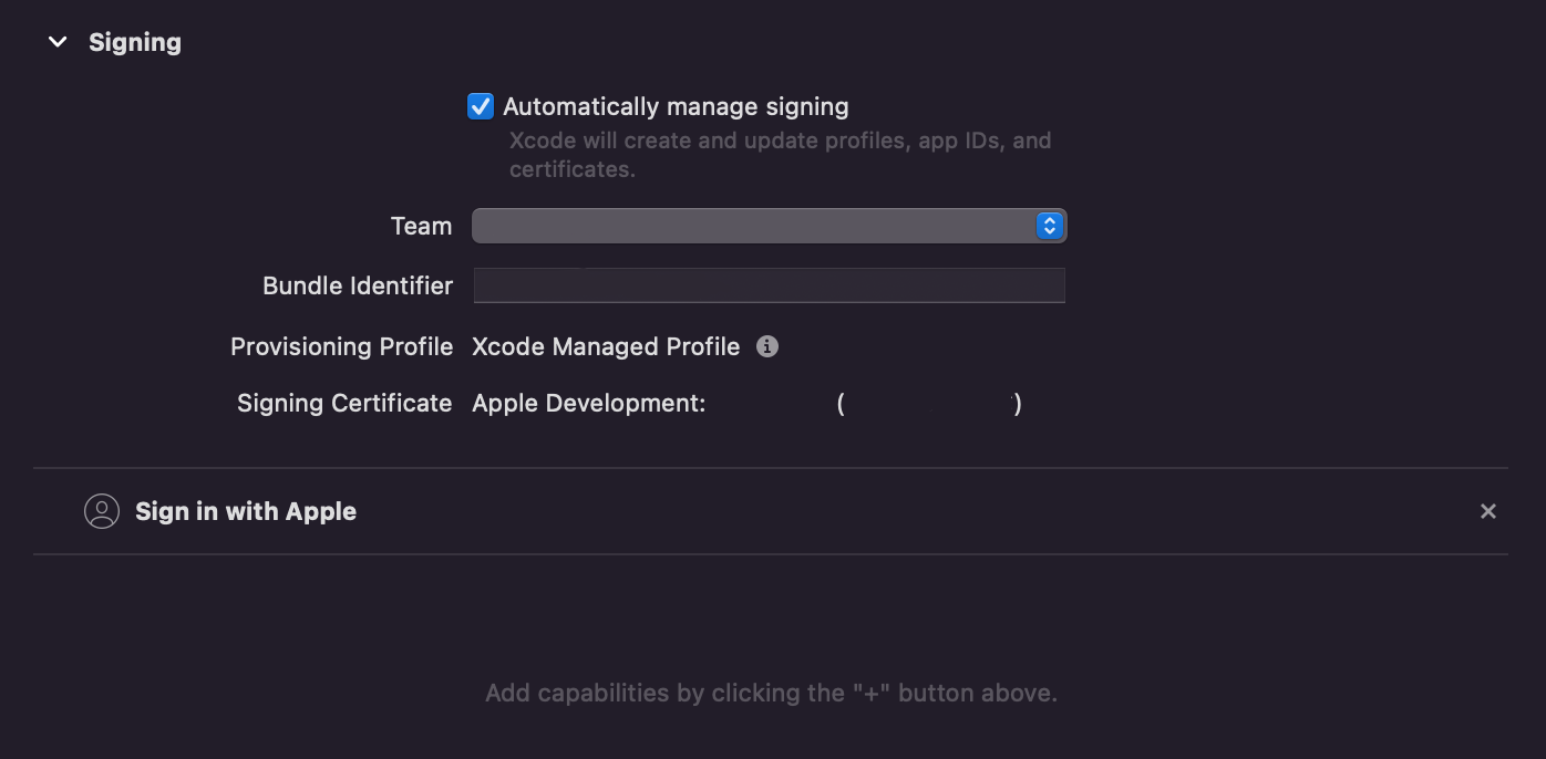 'Signing & Capabilities' 탭에서 '+Capability' 버튼을 누른다음, 'Sign in with Apple'을 찾아 클릭하여 추가해줍니다.