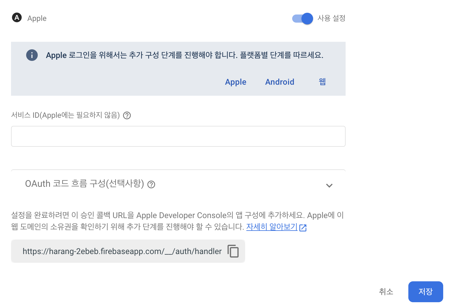 저희는 애플 로그인을 Firebase와 연동하여 구현할 계획입니다.