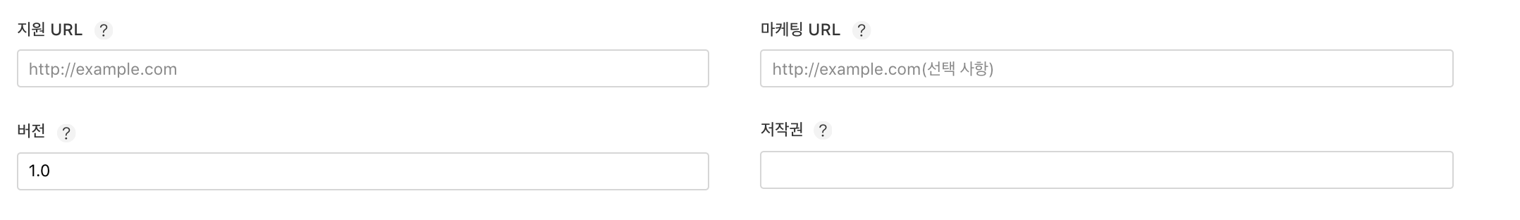 흔히 프로그램에서 볼 수 있는 'Copyright 2021- XX Company' 같은 문구를 적는 란입니다. 역시 앱스토어에 표시됩니다. 저 같은 경우 '2022 (회사이름)'라고 작성하였습니다.