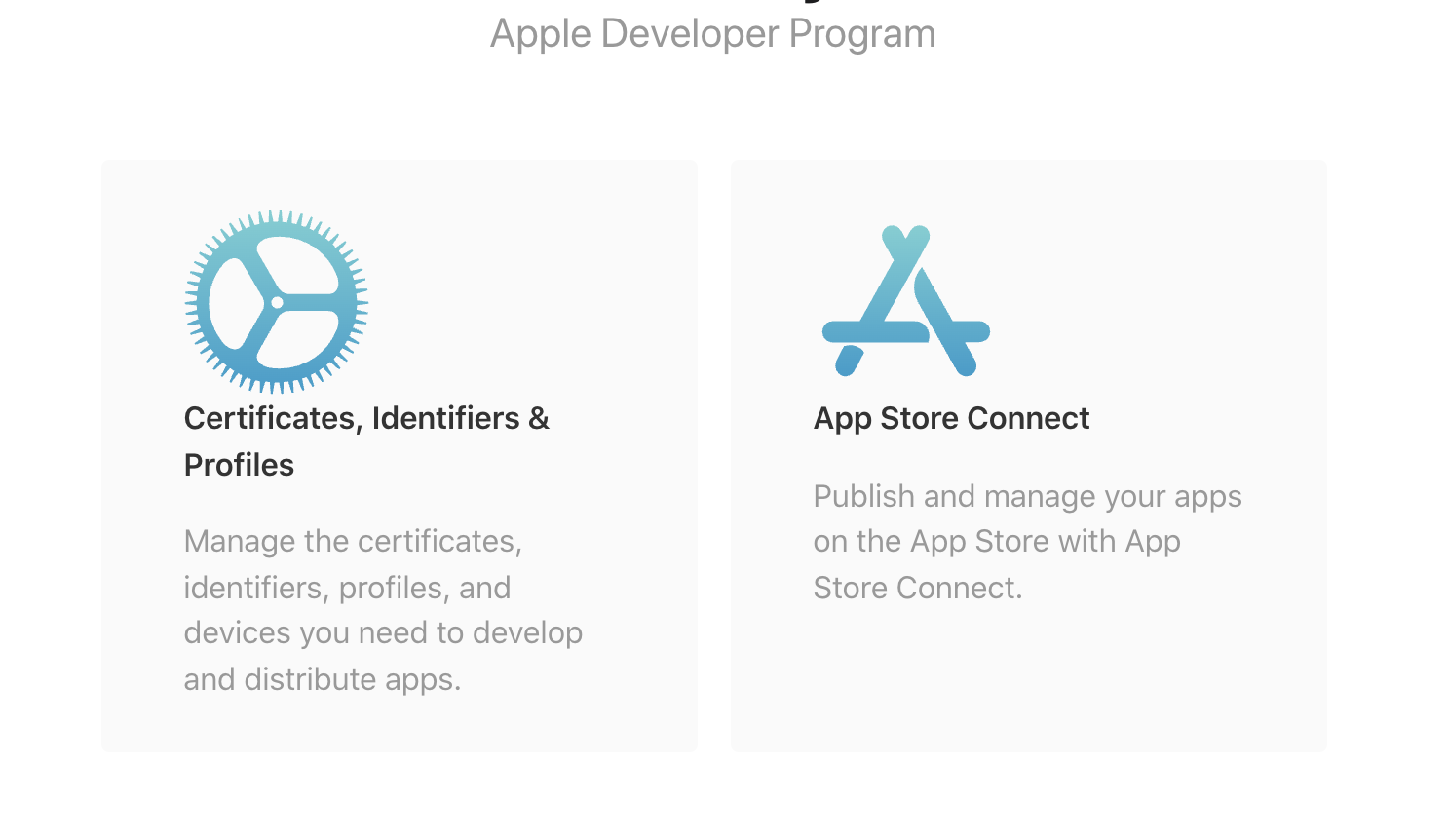 앱 스토어에 앱을 출시하기 위해선 먼저 앱의 ID를 등록하여야 하기 때문에, 'Certificates, Indentifiers & Profiles' 버튼을 눌러줍니다.