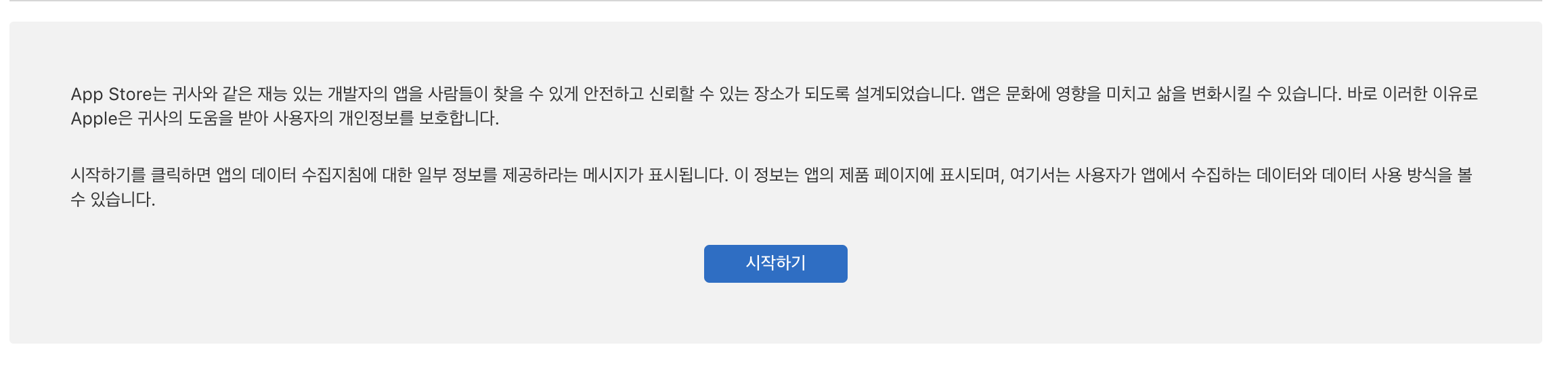 다음으로 밑에 있는 '시작하기'를 누르시면 앱이 추가적으로 어떠한 개인정보를 수집하고 관리하는지 조사합니다. 뜨는 창에 따라 정보를 모두 입력해주시면 됩니다.