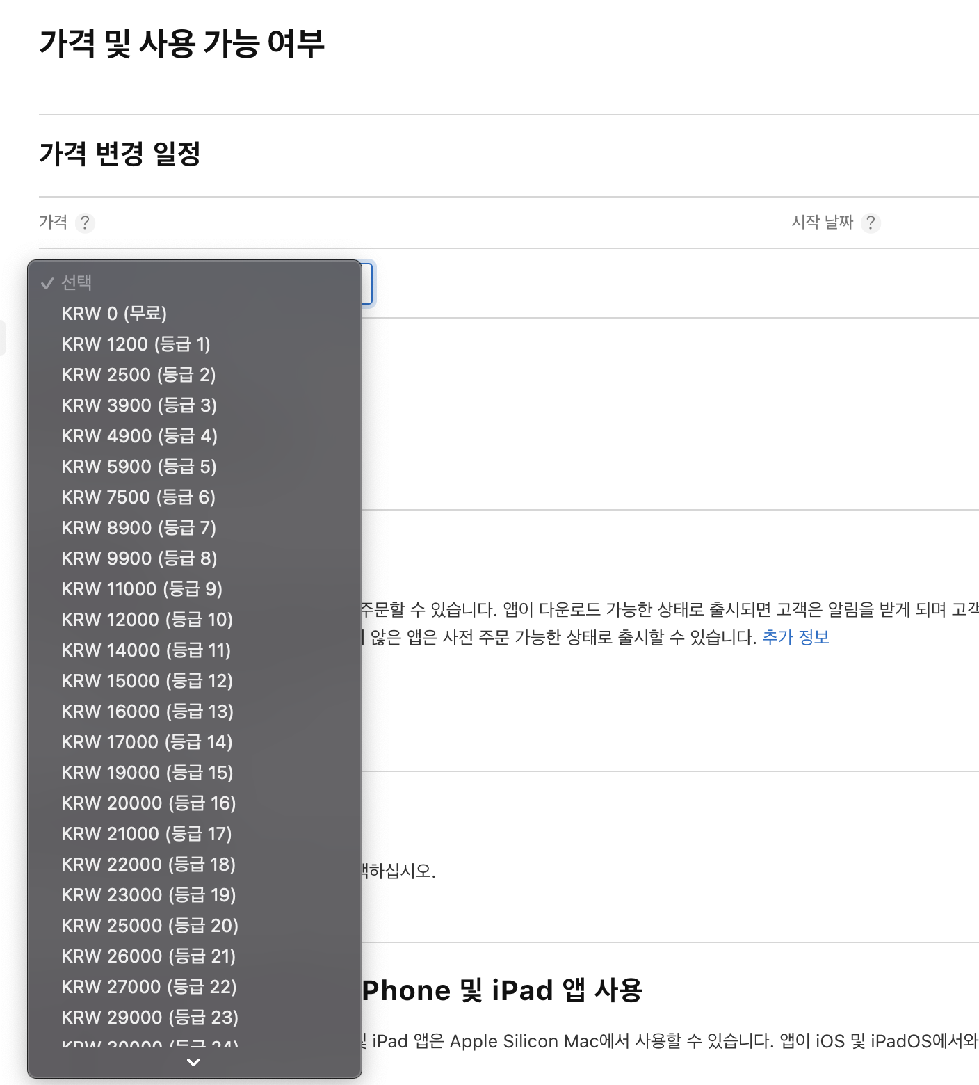 들어 간 후 가격 변경 일정 밑에 있는 가격을 눌러 원하시는 가격을 선택해주시면 됩니다.
